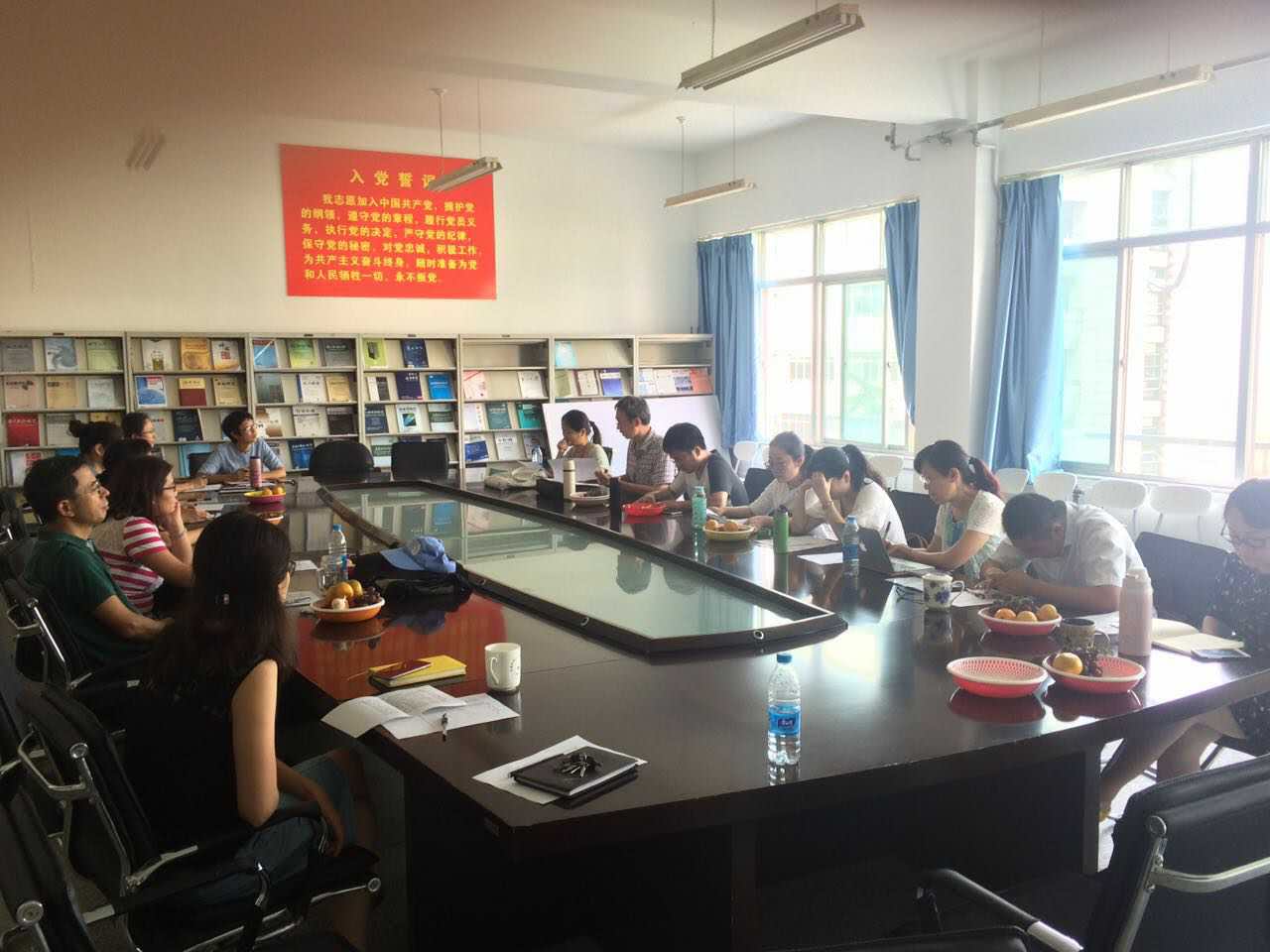 在会上,班主任之间进行了互评,此次互评结果与学生对班主任的测评成绩相结合将最终综合选出两名本年度的优秀班主任。