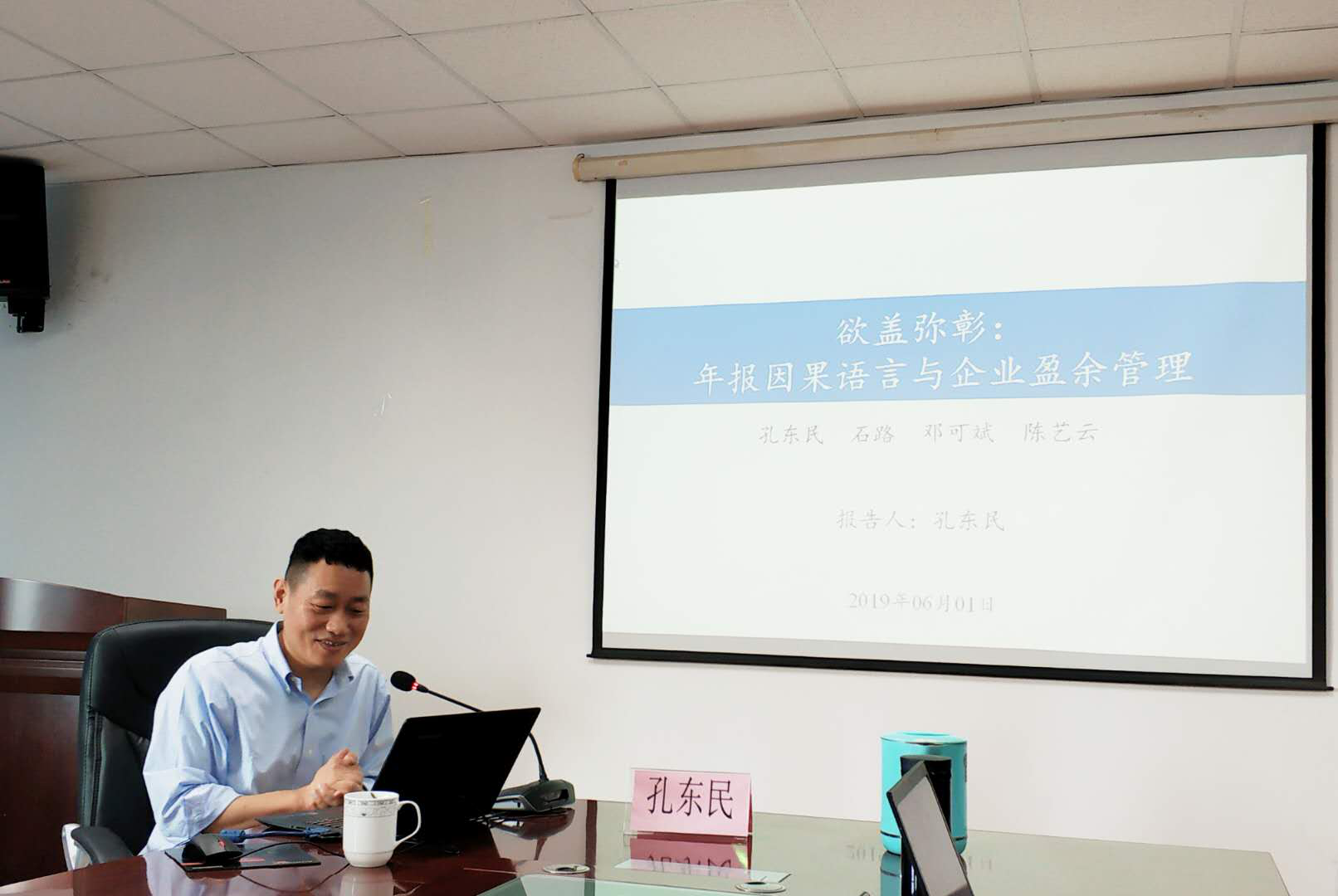 2019年6月10日上午,孔东民教授应邀到BB贝博艾弗森官网开展学术交流与指导,并做客BB贝博艾弗森官网2019第13期“经济学名家讲堂”,为师生做了《欲盖弥彰:年报因果语言与企业盈余管理》的精彩学术报告。