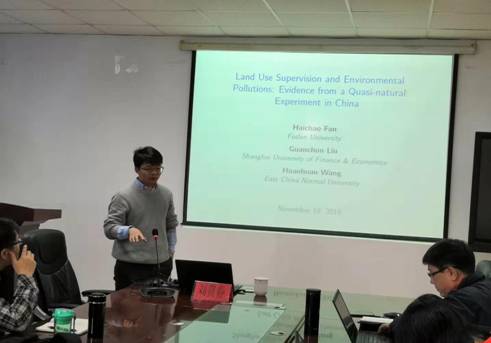 2019年11月18日上午,上海财经大学刘贯春副教授应邀到BB贝博艾弗森官网开展学术交流,并做客BB贝博艾弗森官网“经济学名家讲堂”,为师生做了《Land Supervision and Environmental Pollutions:Evidence from a Quasi-natural Experiment in China》的精彩学术报告。BB贝博艾弗森官网部分教师和研究生参加了此次交流活动。