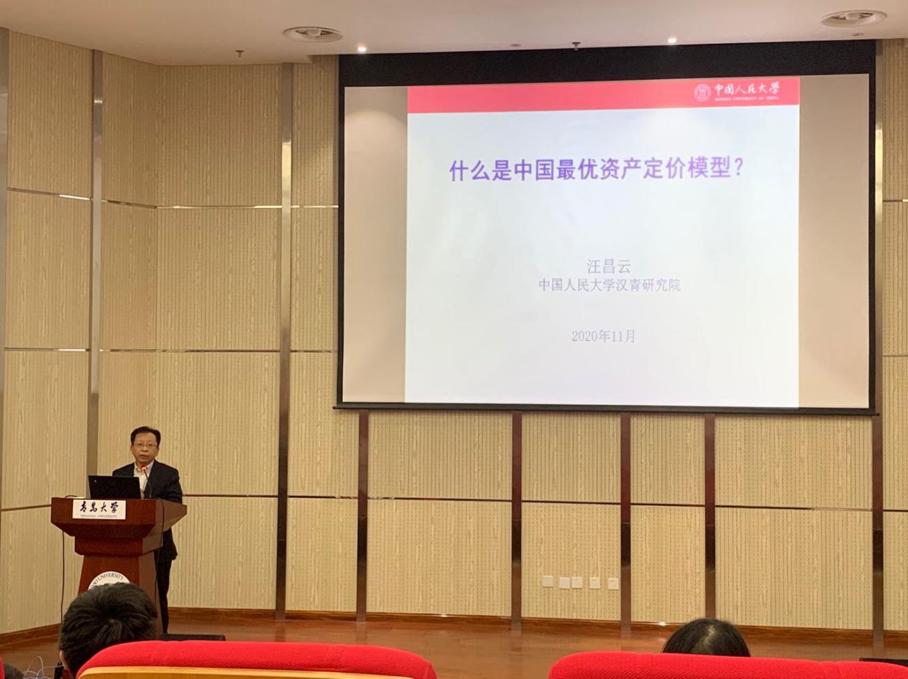 2020年11月2日下午,中国人民大学汪昌云教授应邀到BB贝博艾弗森官网开展学术交流与指导,并做客BB贝博艾弗森官网“经济学名家讲堂”,为师生做了《什么是中国最优资产定价模型》的精彩学术报告。BB贝博艾弗森官网的部分教师和学生参加了此次学术交流。