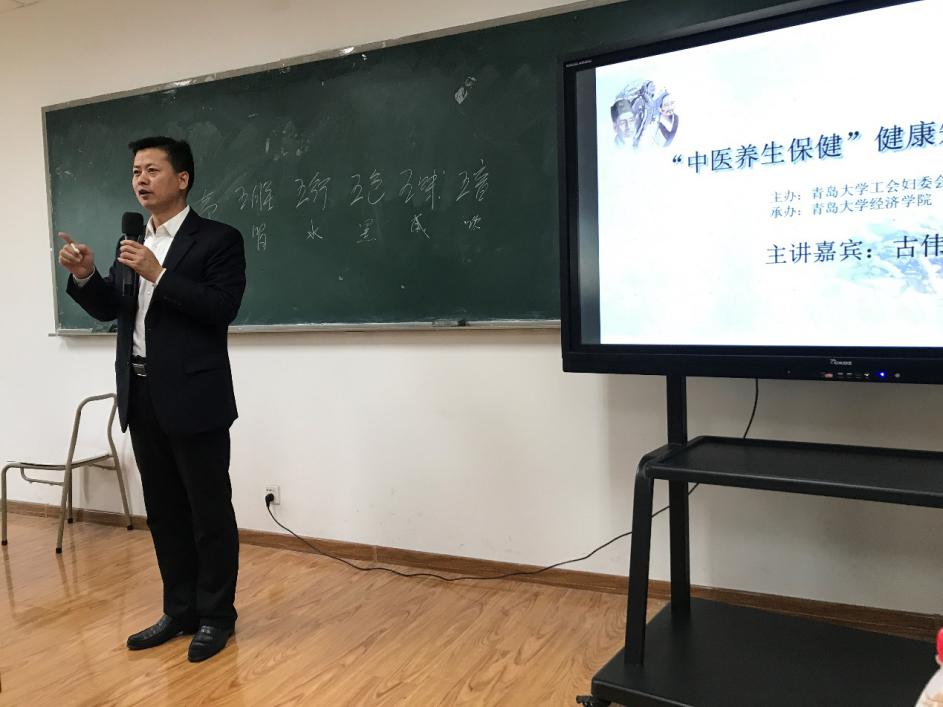 为提高教职工的保健养生意识,关爱大家的健康水平,11月19日下午,由BB贝博艾弗森官网工会妇委会主办、BB贝博艾弗森官网承办,BB贝博艾弗森官网“中医养生保健”健康知识讲座于金家岭三号实验楼411会议室成功举办。本次讲座特邀青岛古易堂中医专家古伟担任主讲嘉宾,BB贝博艾弗森官网工会小组长许清清主持,BB贝博艾弗森官网工会副主席万萍莉和学校教职工代表共同聆听讲座。