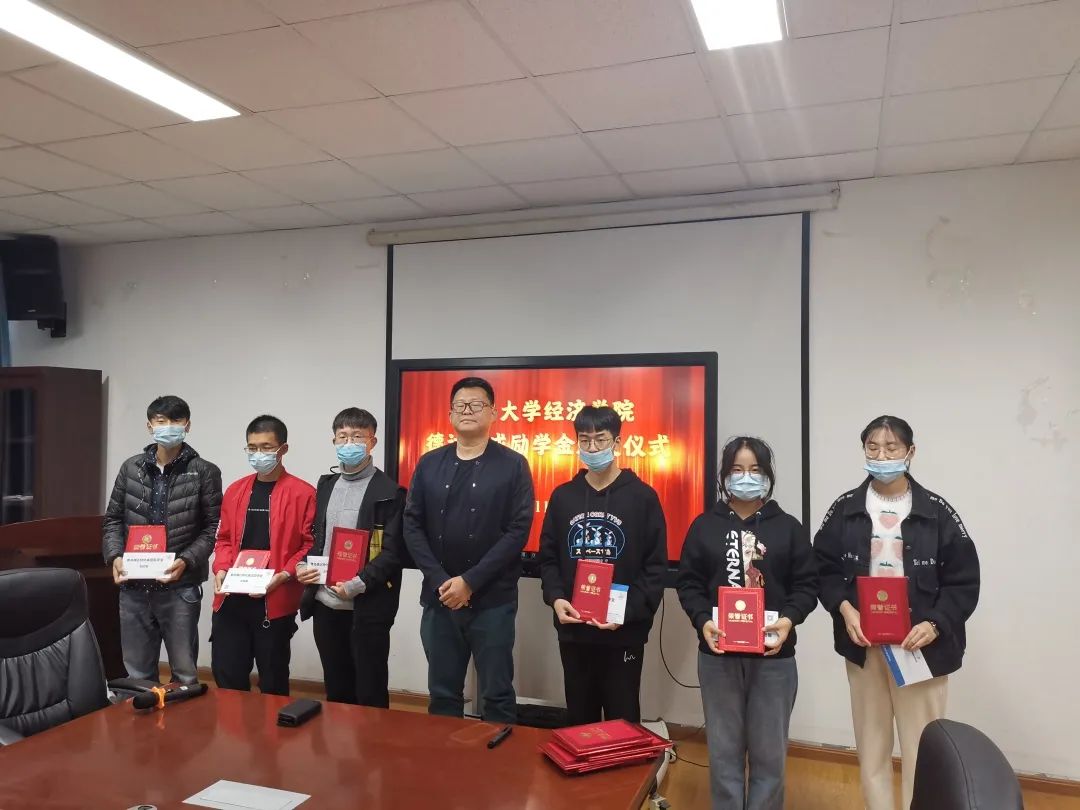 青岛德达志成化工有限公司总经理邹超先生出席了本次活动,并与BB贝博艾弗森官网19级辅导员李冉老师及BB贝博艾弗森官网学工办主任、20级辅导员任龙老师一同,为获奖的12名学生颁发励学金证书,并提供三万元的资金资助。