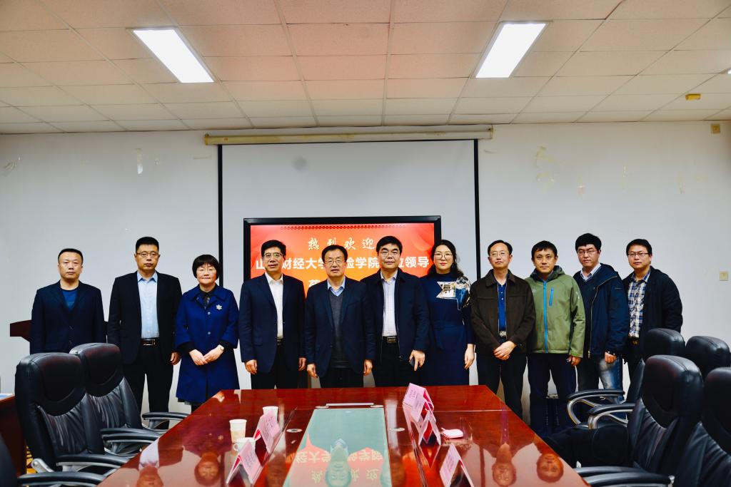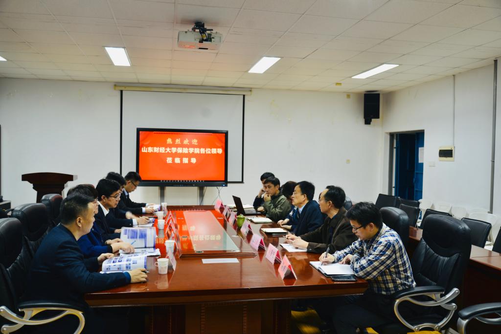 11月18日下午,山东财经大学保险学院党委书记朱传武、院长葛永波一行5人来BB贝博艾弗森官网调研交流,BB贝博艾弗森官网院长、党委副书记刘喜华,党委副书记王海荣,副院长陈东景、逯进、吕学梁,院长助理司登奎等参加了交流会。