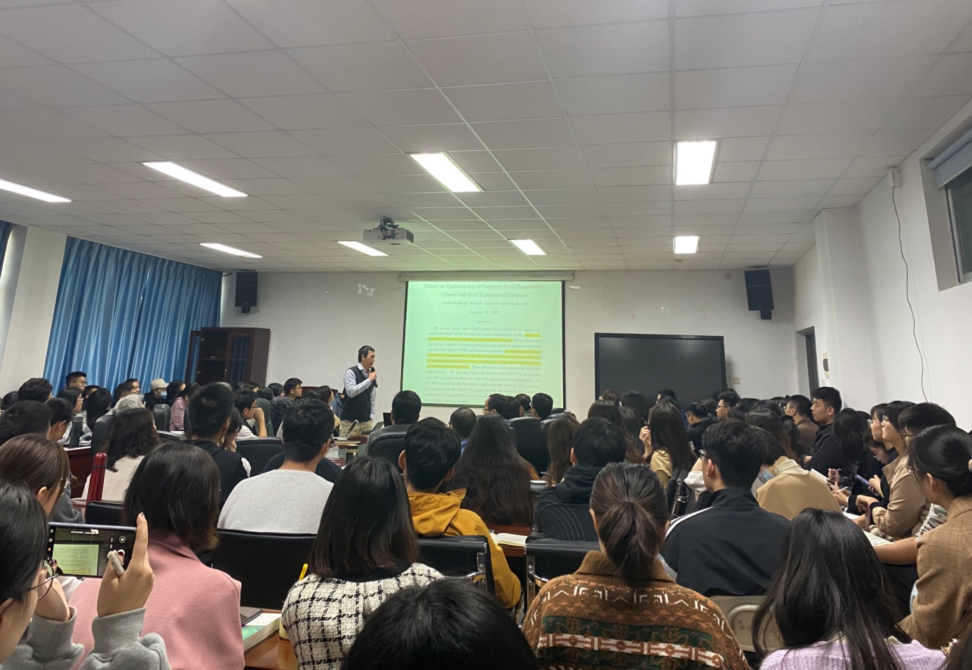 2020年11月19日上午,山东大学陈强教授应邀到BB贝博艾弗森官网开展学术交流与指导,并做客BB贝博艾弗森官网“经济学名家讲堂”,在金家岭校区西院办公楼307会议室为师生做了《随机实验与双重差分法》的精彩学术报告。BB贝博艾弗森官网的部分教师和百余名学生参加了此次学术交流。
