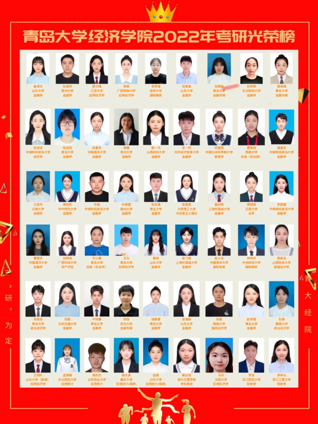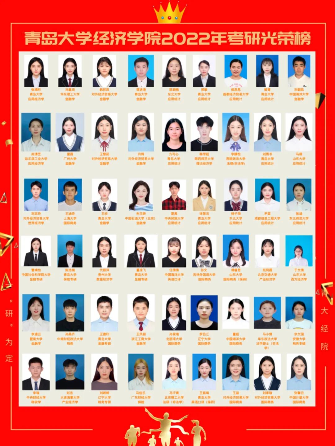 在147位成功上岸的毕业生中,众多学子考取了包括中央财经大学、对外经济贸易大学、北京师范大学、中南财经政法大学、西南财经大学、中国社会科学院大学等国内知名院校和科研院所的硕士研究生,成功踏入名校大门。双一流及科研院所的录取率高达60%。共有26位同学初试分数达到400分以上,占上岸总人数的21.14%,其中最高分达438分。