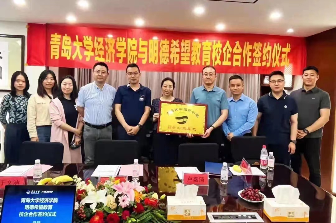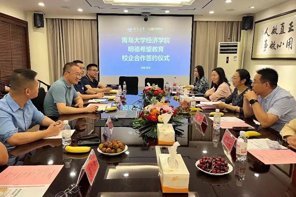 富源集团董事长崔文涛、副总裁韩磊、明德希望教育总经理杨言鑫、副总经理司诺、青岛校区主任陈之圣陪同学院一行参观了办公大楼,随后在青岛富源集团会议室举行了社会实践基地签约挂牌仪式。崔文涛代表富源集团向BB贝博艾弗森官网一行表示热烈欢迎,详细介绍了集团的发展历程、业务领域、未来发展规划以及集团人才培养机制,希望双方优势互补,资源共享,拓宽合作领域、创新合作模式,共同培育优秀人才。于文洁向富源集团介绍了BB贝博艾弗森官网的发展历程、学科设置、学生结构、人才培养等情况,希望校企双方能全面推进科学研究、人才培养等方面的交流合作,提升学院学生就业率、提升学院双创比赛质量,实现人才输送、教育和产业互动融合、学校和企业互惠共赢。