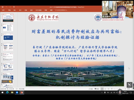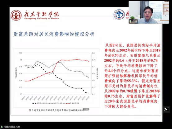 2022年11月21日晚上19:00,广东金融学院副校长、广东外语外贸大学金融学院博土生导师易行健教授受邀线上为全院师生做名为《财富差距的居民消费抑制效应与共同富裕机制探讨与经验证据》的学术报告。讲座由BB贝博艾弗森官网刘喜华院长主持,院内外260余名师生参与了此次学术交流活动。