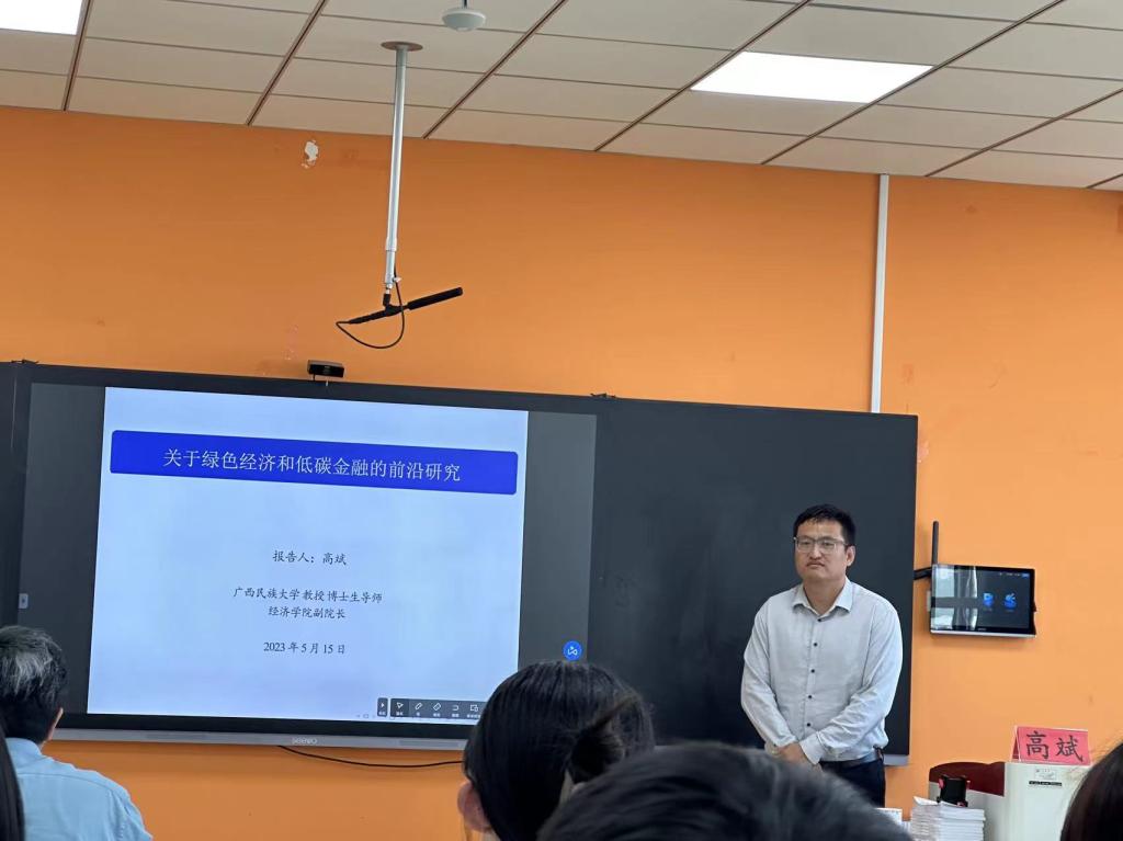 2023年5月15日下午,广西民族大学BB贝博艾弗森官网高斌教授受邀在金家岭校区为全院师生做了题为《碳风险与股票定价:文献回顾与实证研究》的学术报告。讲座由BB贝博艾弗森官网副院长逯进教授主持,学院60余名师生参与了此次学术交流活动。