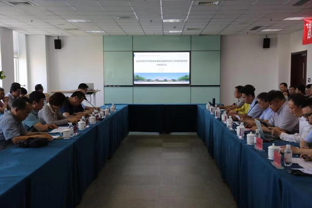 胡金焱向专家组作开题汇报,胡金焱紧扣“金融结构优化与制度创新如何促进实体经济高质量发展”这一核心问题,从选题价值及意义、主要研究内容、课题的创新点、课题研究的可行性与预期成果等四个方面进行了详细论述和系统论证。