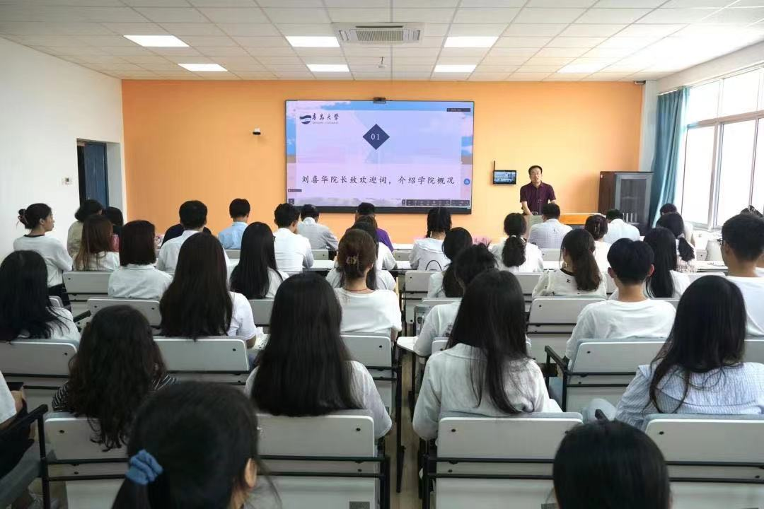 首先,刘喜华院长为新生致欢迎辞,并对学院的历史沿革、发展动态作了简要介绍。他指出,青大BB贝博艾弗森官网成立三十多年来,学科建设、人才培养等各项工作都取得了长足进步,这离不开每一位青大人的共同努力。作为新一代青大人,同学们要以一腔热忱投身学术研究和社会实践,为新时代中国特色社会主义事业建设贡献力量。