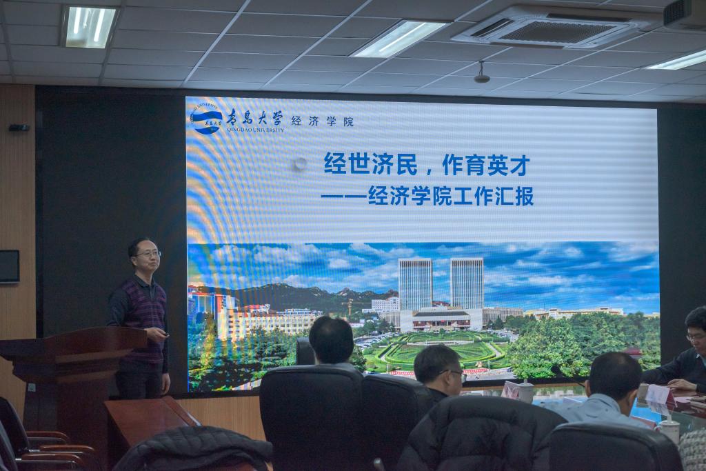 随后,胡金焱与各位专家、学院领导班子、教师代表等二十余人在BB贝博艾弗森官网307会议室召开一流课程建设座谈会。会议由BB贝博艾弗森官网党委书记邱建国主持。会上,陈东景副院长汇报了BB贝博艾弗森官网学科发展、专业建设、师资队伍、教学资源和人才培养等基本状况,金融系龙琼华副教授汇报了货币金融学一流课程建设情况。