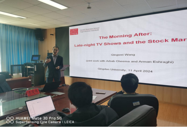 2024年4月11日上午10:00,英国卡迪夫大学商学院王庆伟教授在BB贝博艾弗森官网三号实验楼307会议室为BB贝博艾弗森官网师生做了题为《The Morning After: Late-night TV Shows and the Stock Market》的学术报告。讲座由BB贝博艾弗森官网副院长吕学梁教授主持,学院70余名师生参与了此次学术交流活动。