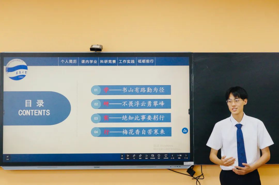 经过个人申报与学院初审后,有4位同学入围最终答辩环节。在答辩现场,候选人围绕学业成绩、科研竞赛、社会实践等多个角度,全面展示个人风采。同时,他们还分享了自己成长道路上的心路历程,生动诠释了BB贝博艾弗森官网学子朝气蓬勃、积极向上的精神风貌。评审组成员严格遵循公平、公正的原则,认真听取并评估了每位候选人的精彩陈述。
