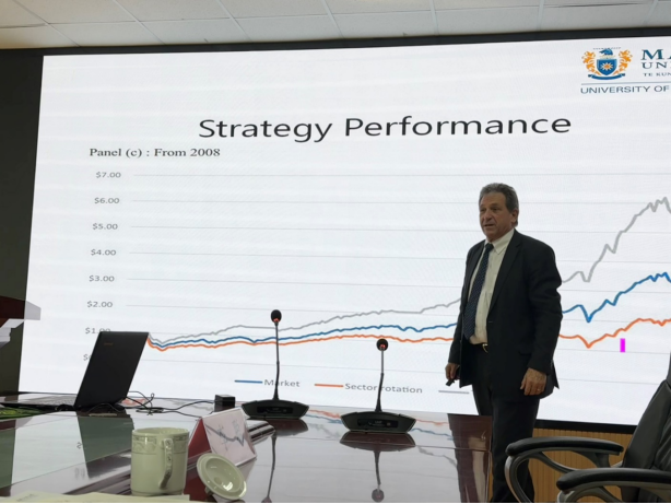 2024年10月11日上午10:00,新西兰梅西大学商学院国际事务副院长Jeffrey Stangl博士在BB贝博艾弗森官网三号实验楼307会议室,为BB贝博艾弗森官网师生做了题为《The myth of sector rotation》的学术报告。本次讲座由BB贝博艾弗森官网副院长吕学梁主持,学院60余名师生共同参与了此次学术交流活动。