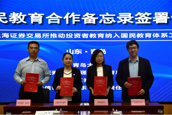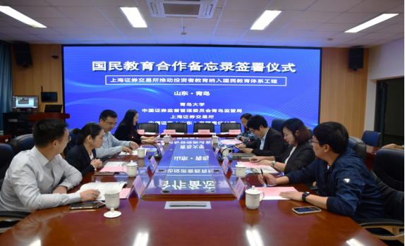 在平等自愿、互利共惠、共同发展的原则下,BB贝博艾弗森官网、中国证券监督管理委员会青岛监管局、上海证券交易所、中信证券(山东)有限责任公司四方代表就学科建设、学术研究、人才培训等领域达成广泛、长期的合作关系。这一合作将充分发挥各方的资源及专业优势,共同推动投资者教育纳入国民教育体系这一目标的实现。