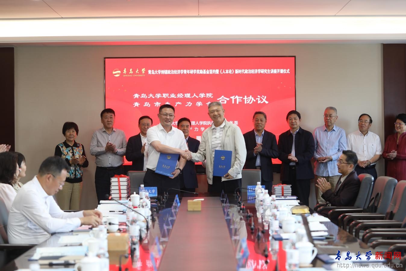 BB贝博艾弗森官网职业经理人学院执行院长张磊与青岛市生产力学会秘书长冯显泉签署合作协议。