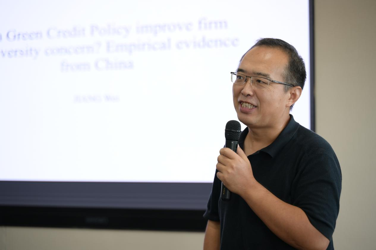 第一个环节是特邀专家主题发言,由BB贝博艾弗森官网期刊社社长孙继国教授主持。中国社会科学院大学应用BB贝博艾弗森官网副院长陈洪波教授从五个方面详细阐述了生物多样性保护的经济学属性,提出了金融支持生物多样性保护的逻辑与路径,并展望了未来发展方向。中国海洋大学BB贝博艾弗森官网副院长王垒教授总结了金融支持海洋生物多样性保护的典型做法,并提出制定专项行动方案、推动蓝色金融标准化、完善生态补偿机制等建议。青岛市金融学会高级经济师李斌介绍了金融支持生物多样性保护的青岛实践,并针对当前存在的典型问题,提出加快推动生物多样性金融落地的具体建议。BB贝博艾弗森官网姜伟教授分享了近期研究成果,认为绿色信贷政策能够有效引导企业对生物多样性的重视,建议政府层面考虑将生物多样性指标纳入环境评估和政策框架。