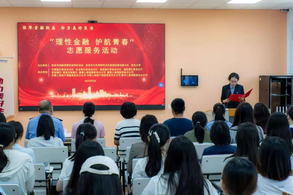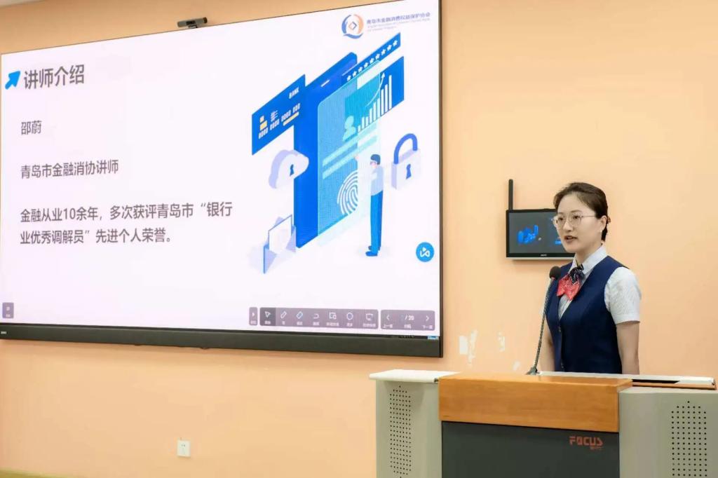 金融教育宣传周到来之际,为进一步普及金融知识,提升大学生金融风险防范意识,9月18日,由青岛市金融消费权益保护协会联合青岛市公安局刑侦支队新型犯罪侦查大队、BB贝博艾弗森官网共同主办的”金融知识进大学“主题宣传活动在BB贝博艾弗森官网金家岭校区西院三号实验楼423教室成功举办,BB贝博艾弗森官网党委副书记于文洁、团委书记戴俊杰、学工办主任任龙、辅导员程漫漫、周晓彤出席本次活动。活动特邀国家金融监督管理总局青岛监管局一级调研员、青岛市金融消费权益保护协会专职副会长王芹、青岛市金融消费权益保护协会副秘书长肖珍凤、青岛市公安局刑侦支队新型犯罪侦查大队四级高级警长杨文志参加。