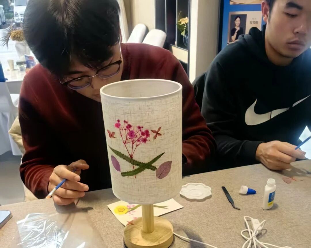 下午的活动则聚焦于“非遗压花灯”制作。在指导老师的讲解与示范下,同学们巧妙运用干花、薄纸与灯架,将自然之美凝练于光影之中。制作过程需要耐心与细心,大家在交流协作中既锻炼了动手能力与专注力,也体验到传统工艺与现代审美融合的创意乐趣。