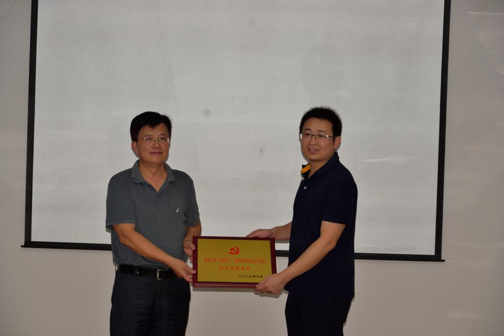 最后,徐龙飞部长向国贸系徐保昌工作室授牌“BB贝博艾弗森官网‘双带头人’教师党支部书记工作室培育创建单位”、向学生第三党支部授牌“BB贝博艾弗森官网党建工作样板支部培育创建单位”。