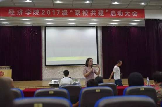 姜茜老师表达了对新生金榜题名的恭喜以及对家校共建工作效果的期待,并建议家长放手孩子,让孩子以成人的姿态独立面对大学生活。