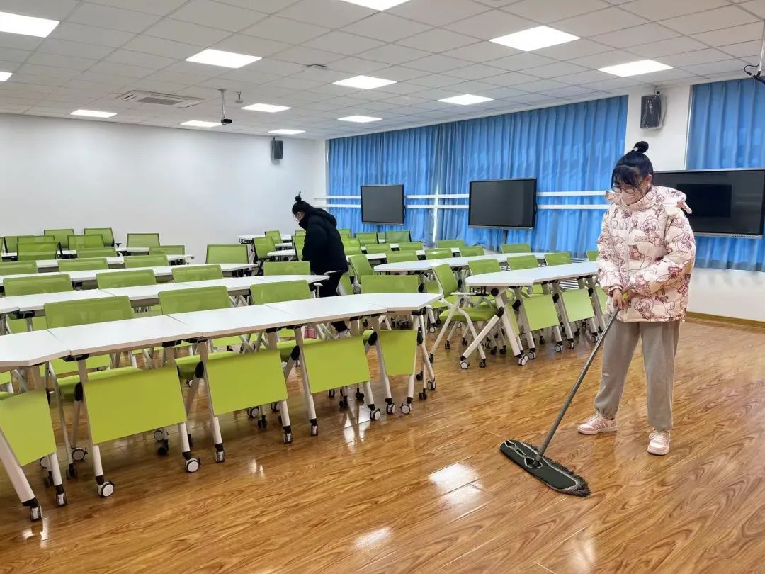 为引导学生在强身健体中积极投身校园环境维护,培养良好的生活习惯和文明共荣的意识,努力营造“人人争当校园守护者”的良好氛围。BB贝博艾弗森官网开展“美丽青大你我共建”志愿服务活动——我为学校办件事,围绕“文明教室”主题开展劳动教育活动。