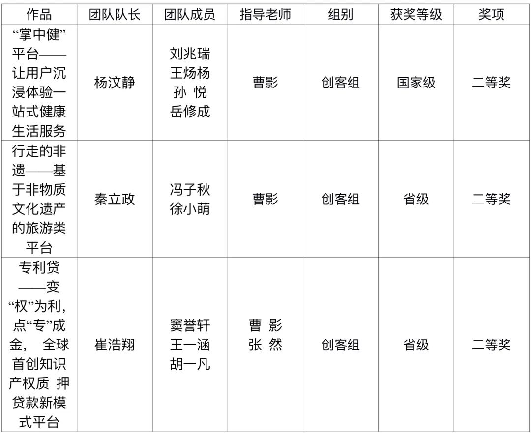 除了经院学子带队的三支团队外,经院学子作为团队成员参与的项目团队也喜获佳绩。其中,BB贝博艾弗森官网郝嘉毅、岳悦参与的项目《智慧互联——智能物联巡行检测技术的先行者》获得国家一等奖,曹阳参与的项目《萄之邀邀——农创ip助力泽山振兴》获得国家二等奖,齐庆昊参与的项目《曲天透——宽频带高增益柔性透明天线》获得国家二等奖。
