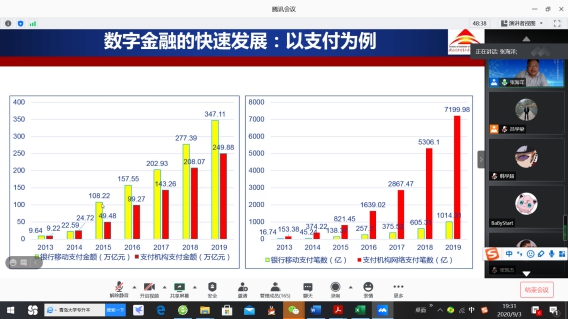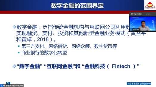 9月3日晚,对外经济贸易大学金融学院副院长张海洋教授为BB贝博艾弗森官网师生近200人,在线上做了题为“数字普惠金融与银行业布局”的高端讲座。