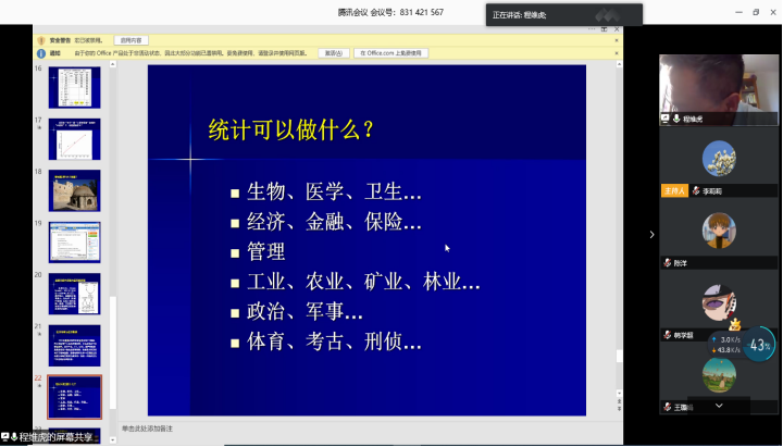 9月3日下午,中国统计教育学会常务理事,中国统计学会理事、北京工业大学应用数理学院博士生导师程维虎教授为BB贝博艾弗森官网师生,在线上做了题为“统计未来发展趋势及应用”的高端讲座。